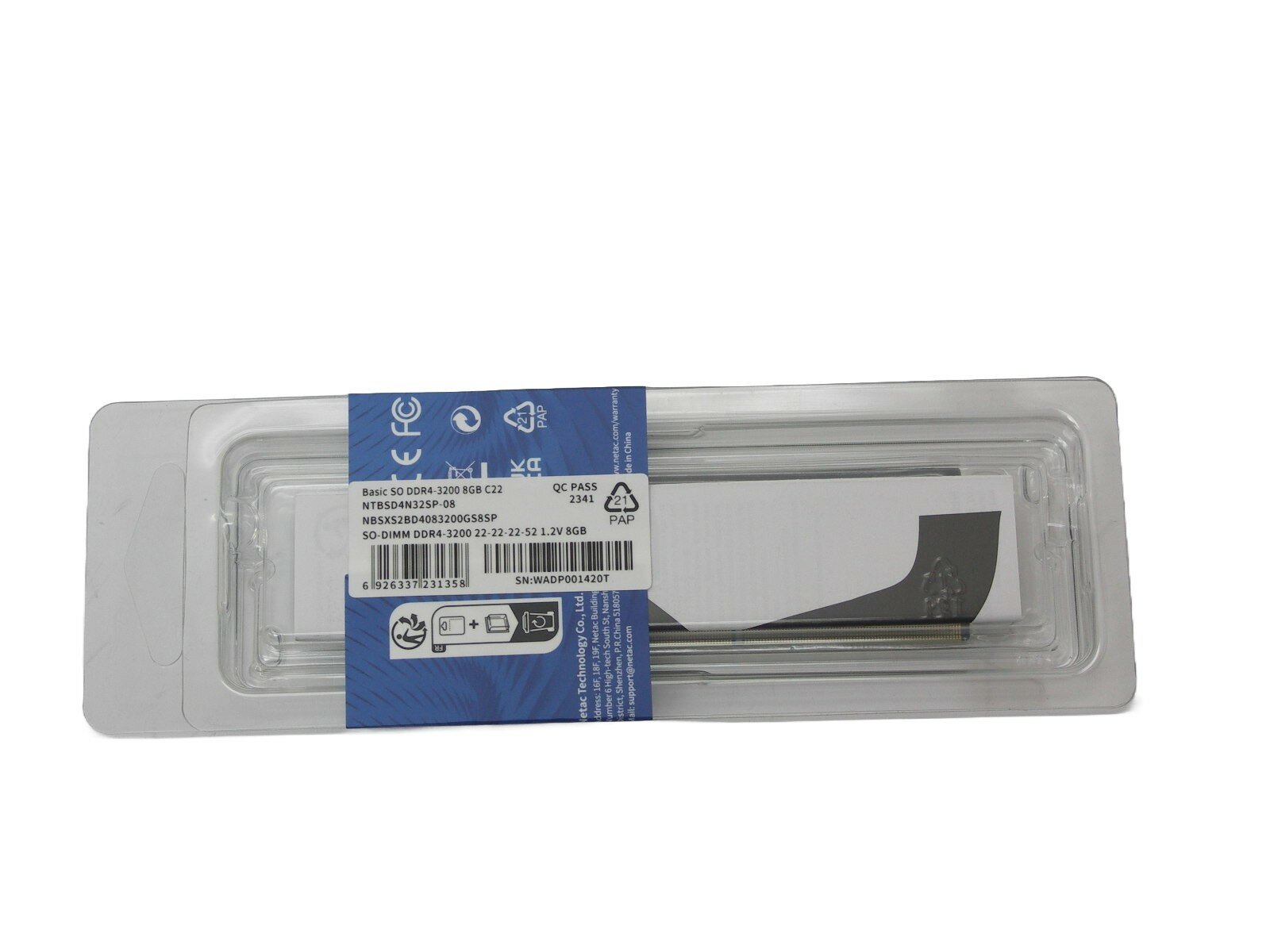 Оперативная память Netac 8 ГБ DDR4 3200 МГц SODIMM NTBSD4N32SP-08