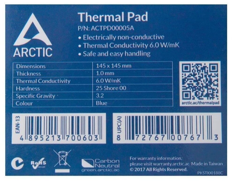 Термопрокладка Arctic 145x145x0.5mm Thermal pad 6.0 WMK ACTPD00004A