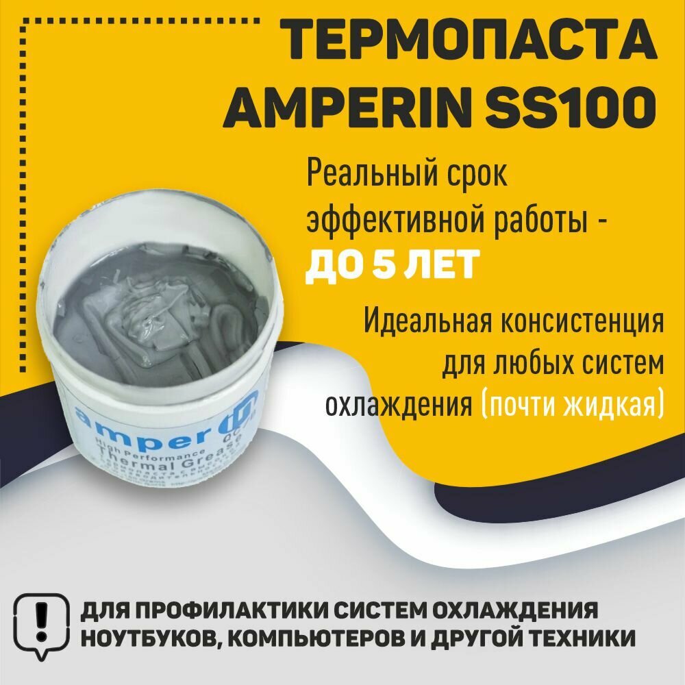 Термопаста Amperin SS100, 30 гр., тюбик, подходит для ноутбука, компьютера, процессора и видеокарты