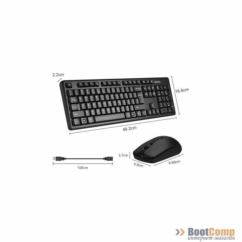 Купить Комплект (клавиатура+мышь) A4TECH 3330N, USB, беспроводной, черный
