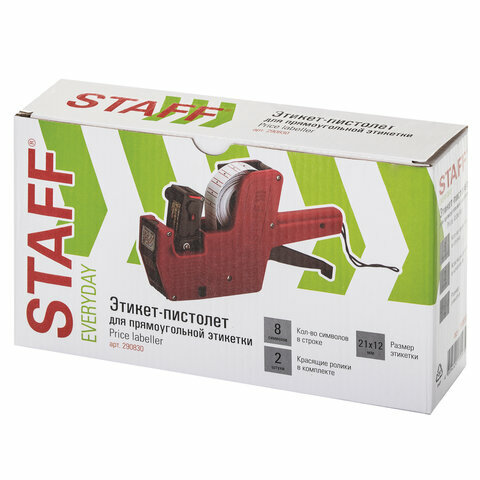 Купить Этикет-пистолет однострочный, комплект 5 шт., прямоугольная лента 21х12 мм, 8 символов, STAFF "EVERYDAY", 290830