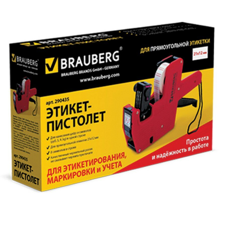 Купить Этикет-пистолет BRAUBERG 1-строчный (цифры, знаки) 8 символов, 21х12 мм, прямоугольная