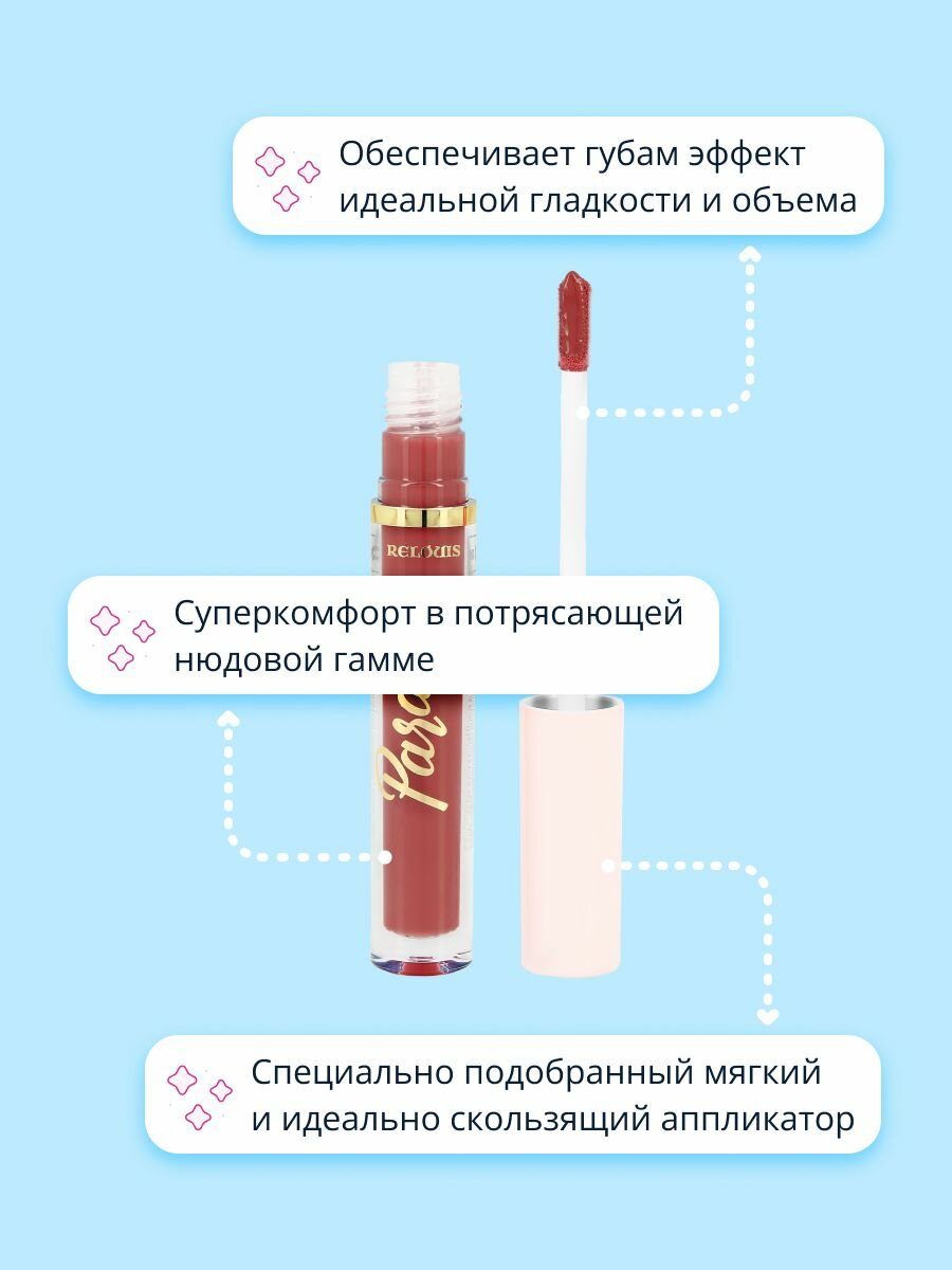 Блеск для губ `RELOUIS` PARADISO тон 04 first date с влажным финишем