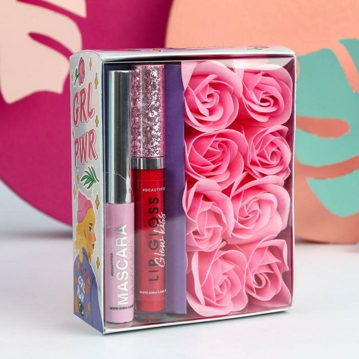 Купить Beauty Fox Подарочный набор GRL PWR (тушь для ресниц, глиттерный блеск для губ и мыльные лепестки)