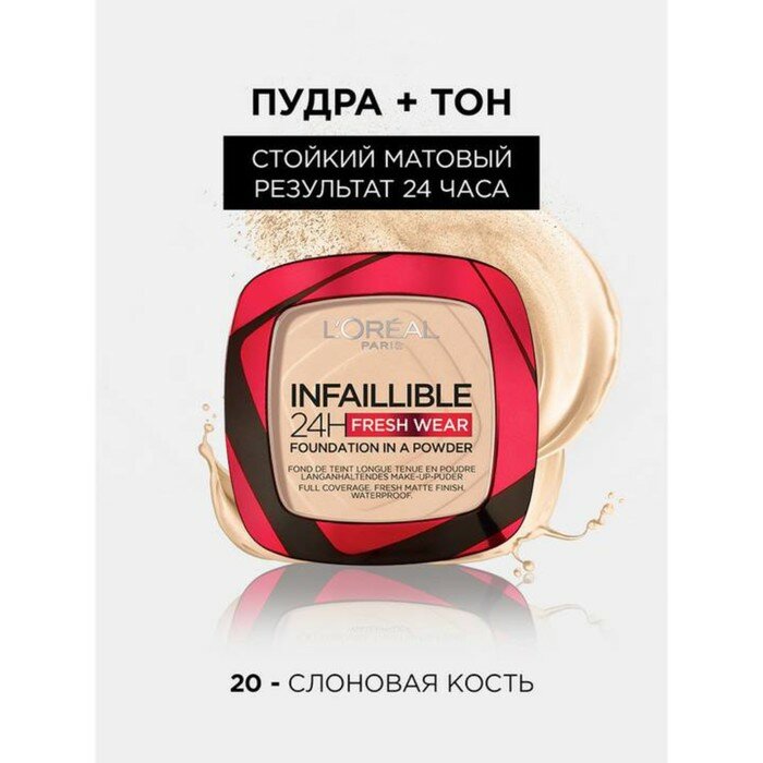 Пудра L'Oreal Paris Infaillible 24h Fresh Wear, тон: 20 слоновая кость, 9г