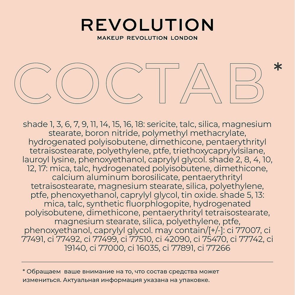 REVOLUTION MAKEUP FOREVER FLAWLESS Allure Палетка теней, 18 цветов