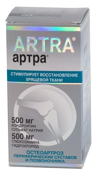 Артра, таблетки покрытые пленочной оболочкой 500 мг+500 мг, 60 шт.