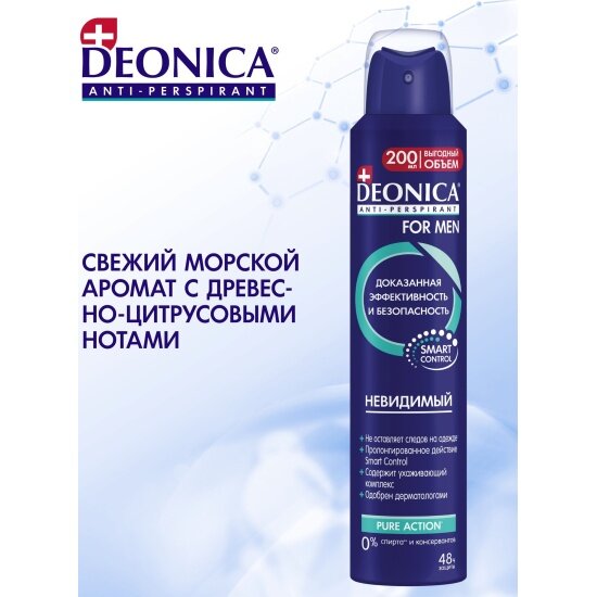 Купить Антиперспирант спрей Deonica for Men Невидимый, 200 мл