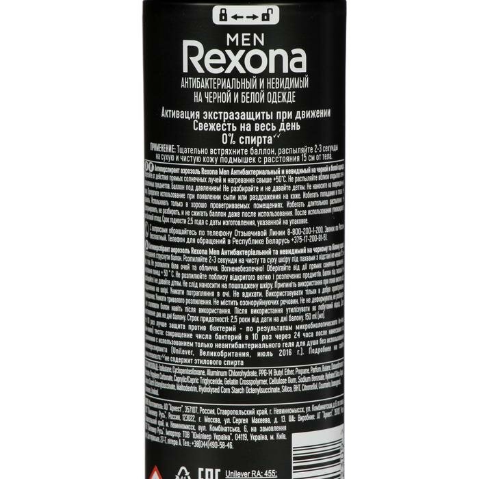 Антиперспирант Rexona Men MotionSense "Антибактериальный и невидимый на черном и белом", аэрозоль, 150 мл./В упаковке шт: 1 интересное: