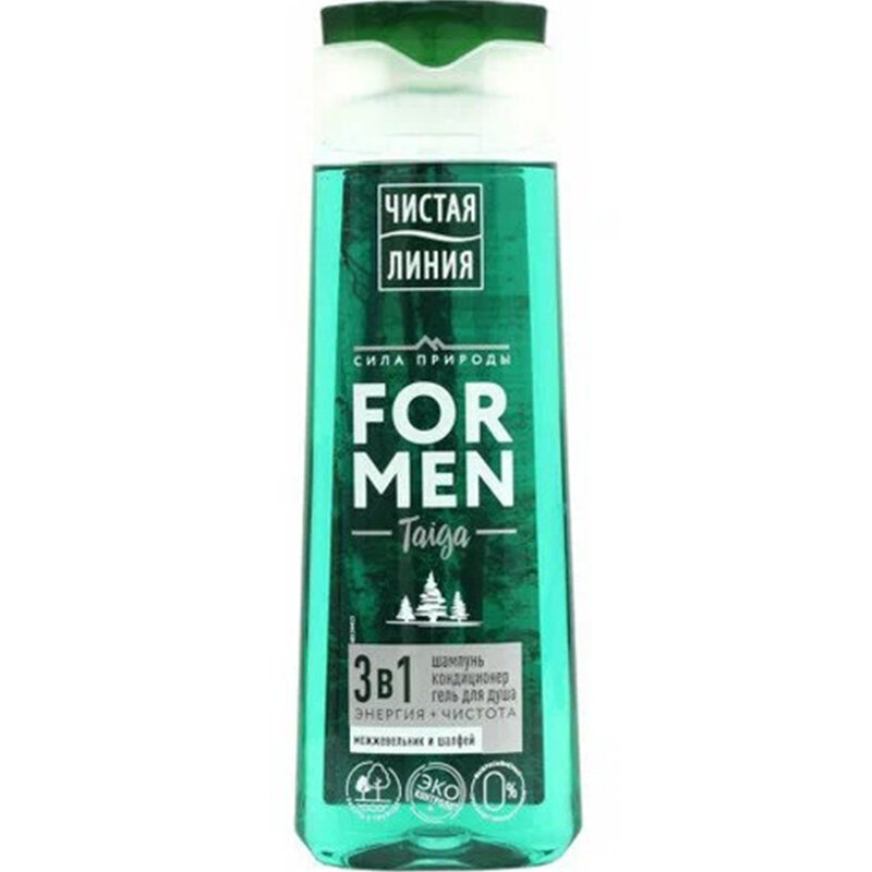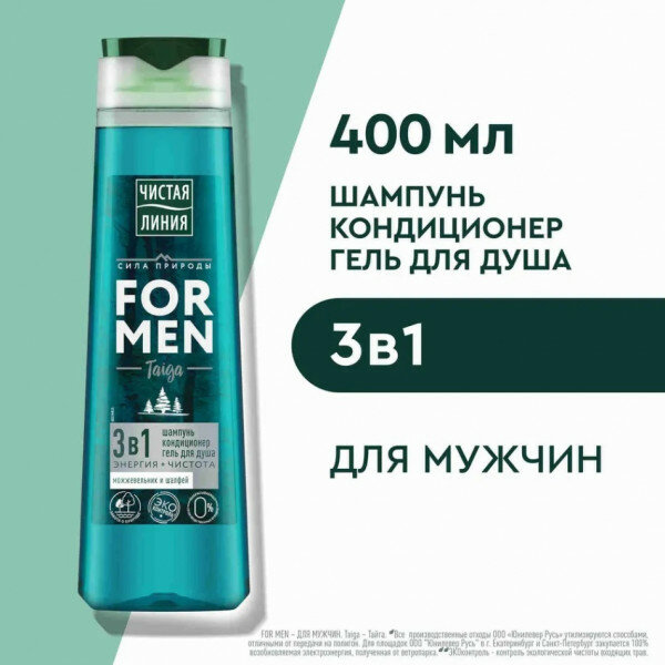 Чистая Линия Шампунь 3 в 1, For Men, Taiga, Энергия и чистота, 400 мл /