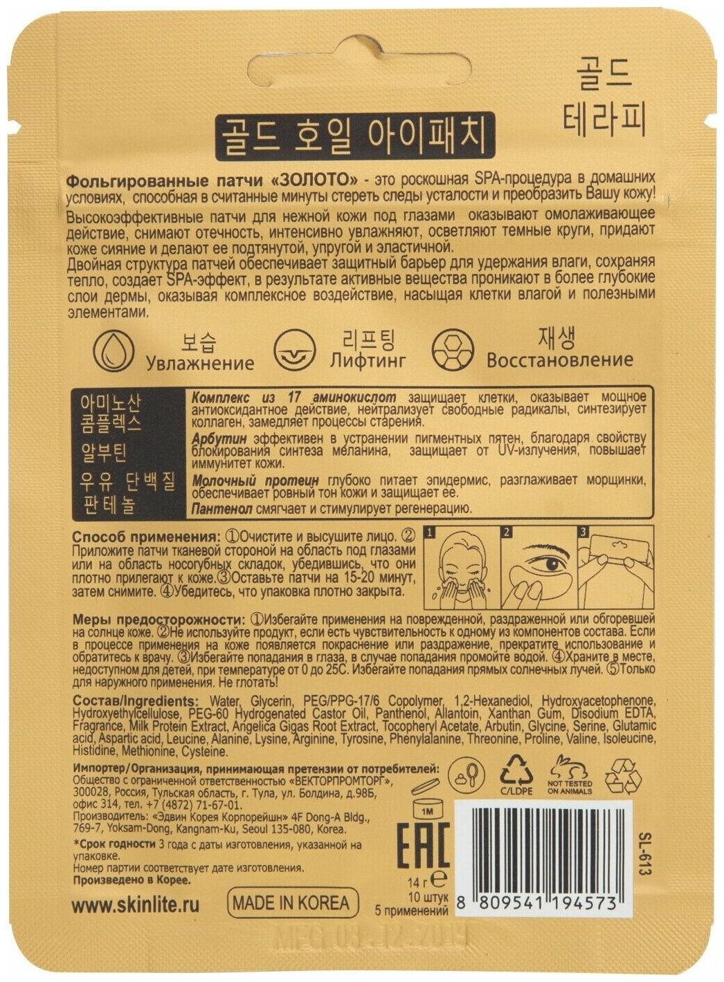 Фольгированные патчи Skinlite золото, 10 шт интересное: