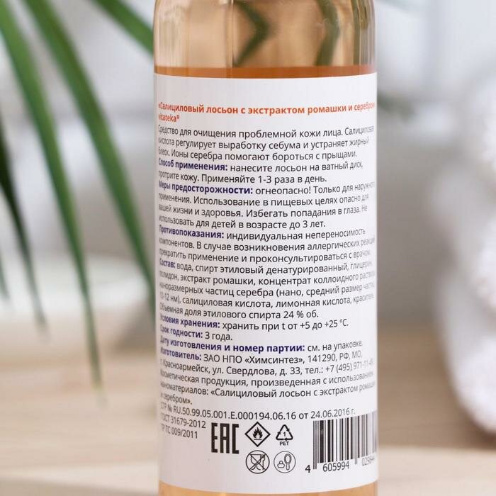 Витатека Салициловый лосьон Витатека с серебром и экстрактом ромашки, 100 мл интересное: