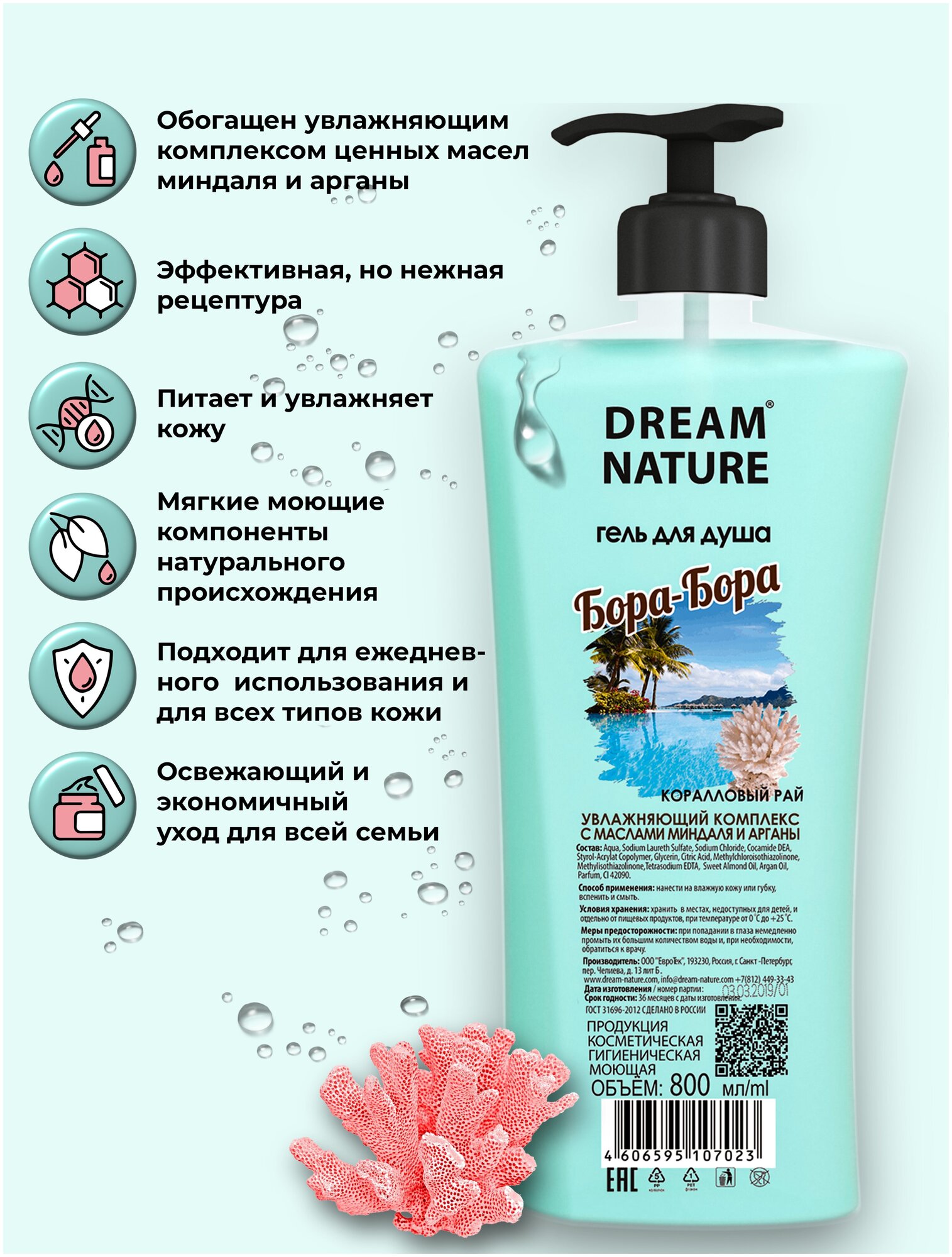 Купить Гель для душа Dream Nature "Бора-Бора", 800 мл