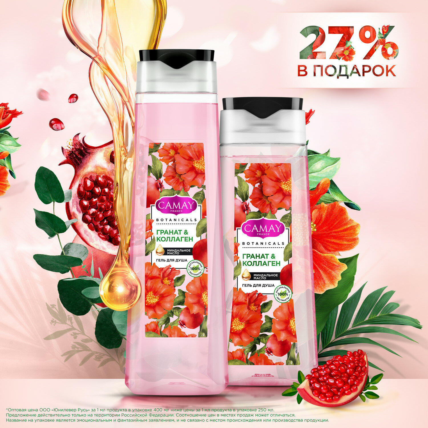 Гель для душа Camay Botanicals Гранат & коллаген, 750 мл