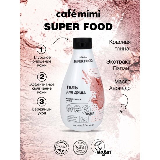 Cafemimi Гель для душа Super Food "Красная глина & Папайя" 370мл