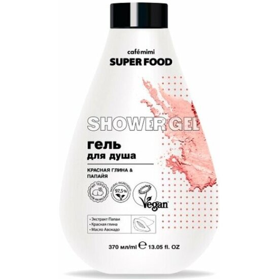 Гель для душа Cafe mimi Super food Красная глина и папайя, 370 мл