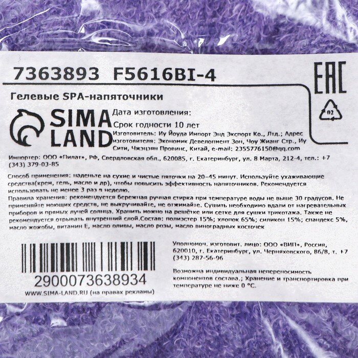 Купить Гелевые SPA-напяточники на основе натуральных масел, увлажняющие, фиолетовые./В упаковке шт: 1