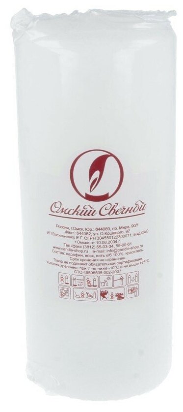 Омский свечной завод Свеча - цилиндр, 7х17 см, 50 ч, 515 г, белая
