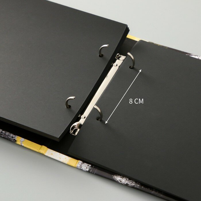 Фотоальбом на кольцах 30 листов "Фотоаппарат на плитке" чёрные листы 18х18 см