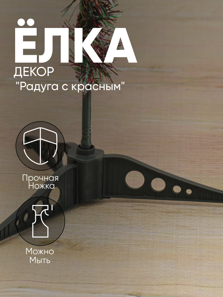 Ёлка радуга с красным 60 см, d иголок 6 см, d нижнего яруса 35 см, 60 веток, пласт подставка