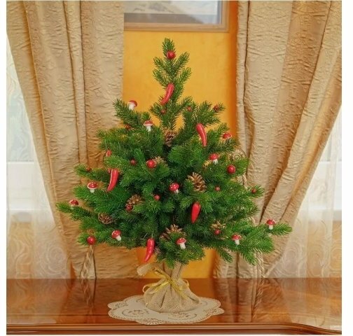 | Минусы: | Не могу назвать это недостатком, просто отмечу, что есть искусственный блеск. Но, думаю, когда ёлка будет в огнях и игрушках, блеск будет не виден. |