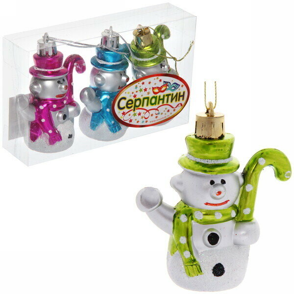 Купить Ёлочные игрушки «Снеговички с посохом» 7,5*6,5см (набор 3шт)