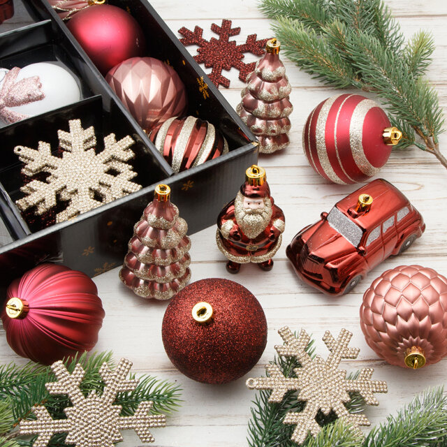 Kaemingk/Winter Deco Набор елочных игрушек Новогодняя Сказка 8-12 см, 25 шт, бордовый с золотым, пластик 2000302