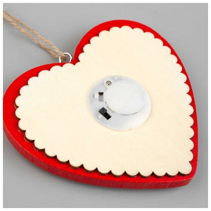 Световые подвески Luazon Lighting Ёлочная игрушка «Красное сердце со снеговиком», от батареек, свечение тёплое белое