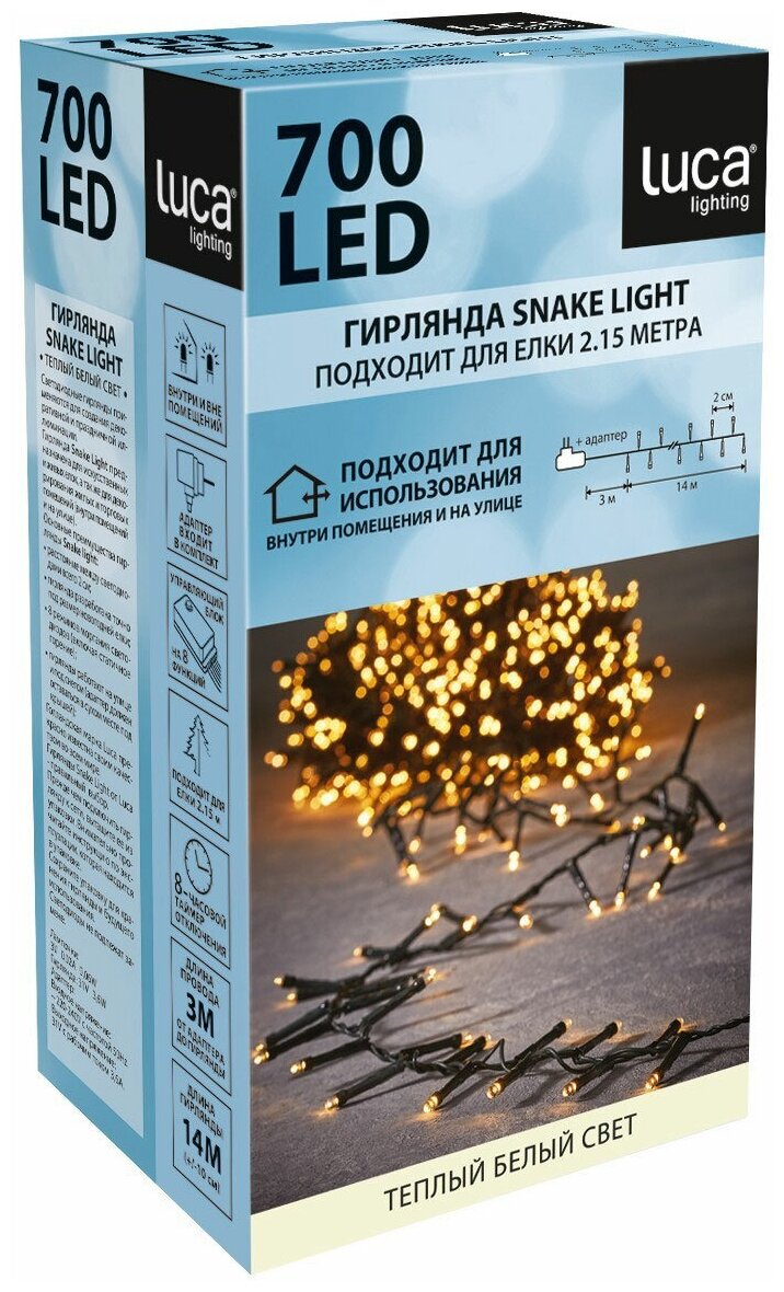 Edelman Светодиодная гирлянда на елку 215 см Luca Snake, 700 теплых белых LED ламп, зеленый ПВХ, контроллер, IP44 83782