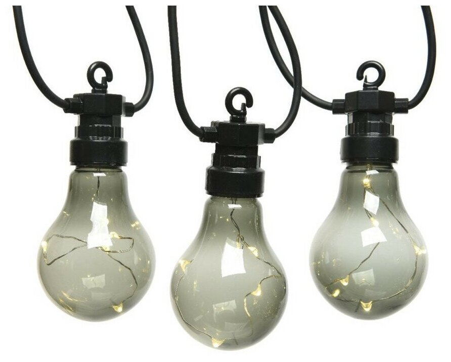 Kaemingk Гирлянда из лампочек Ретро Стиль, 20 дымчатых ламп, теплые белые LED, 9.5 м, черный ПВХ, соединяемая, IP44 490178