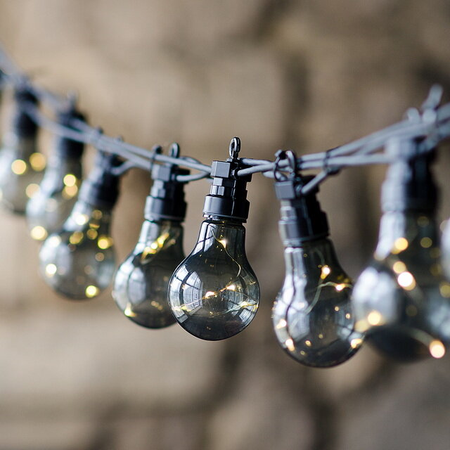 Kaemingk Гирлянда из лампочек Ретро Стиль, 20 ламп, теплые белые LED, 9.5 м, черный ПВХ, соединяемая, IP44 490176
