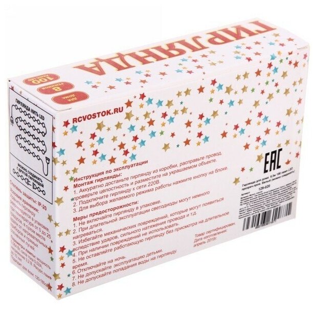 Купить Гирлянда 9,5м. нить прозрачная, 100LED, 8 режимов, белый (можно соединять)