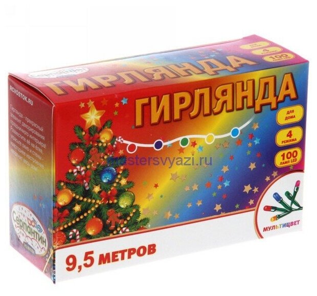 СохранитьГирлянда 9,5м., 100LED, зелёный провод, Мультицвет, 4 режима интересное: