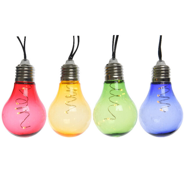 Купить Садовая электрогирлянда GLOW, 10 разноцветных мерцающих ретро ламп, 50 тёплыми белыми micro LED-огнями, 4.5+5 м, черный PVC провод, уличная, Kaemingk (Lumineo) 894986