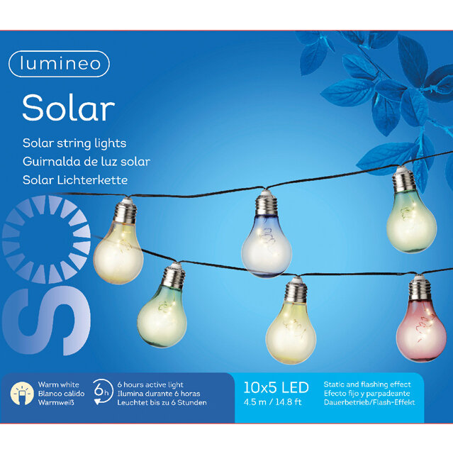 Садовая электрогирлянда GLOW, 10 разноцветных мерцающих ретро ламп, 50 тёплыми белыми micro LED-огнями, 4.5+5 м, черный PVC провод, уличная, Kaemingk (Lumineo) 894986 интересное: