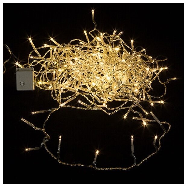 Светодиодная гирлянда нить 120 теплых белых LED ламп 9 м, прозрачный ПВХ, контроллер, IP44, Kaemingk (Lumineo)