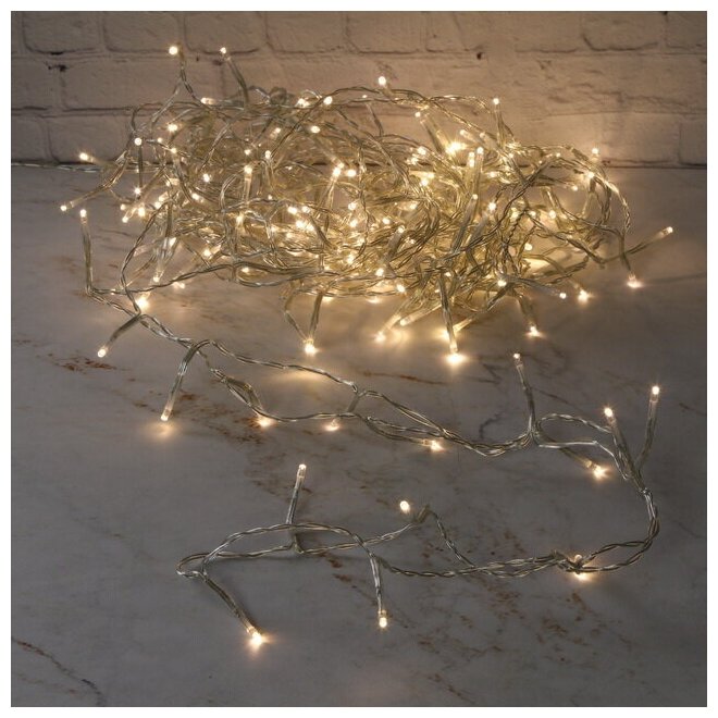 Светодиодная гирлянда нить объемная, 180 ламп с теплым светом LED ламп, 9м, прозрачный PVC провод