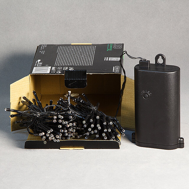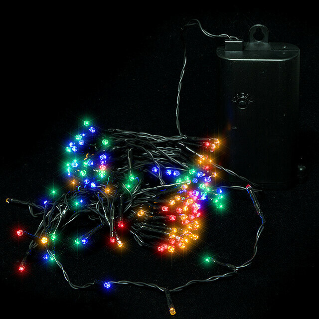 Светодиодная гирлянда на батарейках 240 разноцветных LED ламп 17.9 м, черный ПВХ, контроллер, таймер, IP44, Kaemingk
