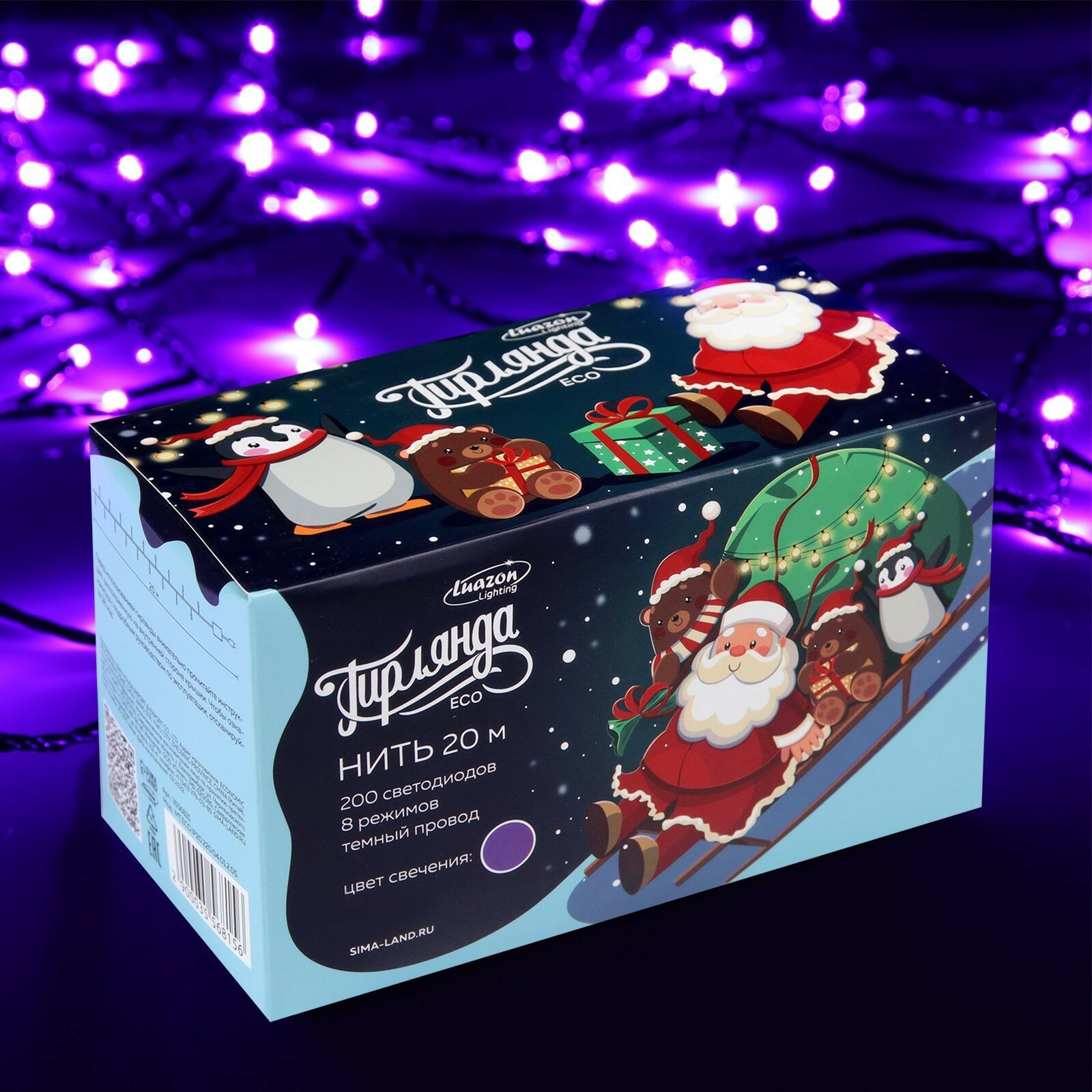 Нить ECO. IP20, 20 м, Н.Т. LED-200-220V, 8 режимов, фиолет 3556815
