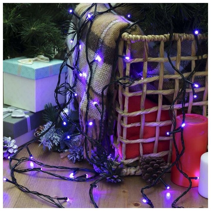Купить Гирлянда «Нить» 20 м, IP20, тёмная нить, 200 LED, свечение фиолетовое, 8 режимов, 220 В