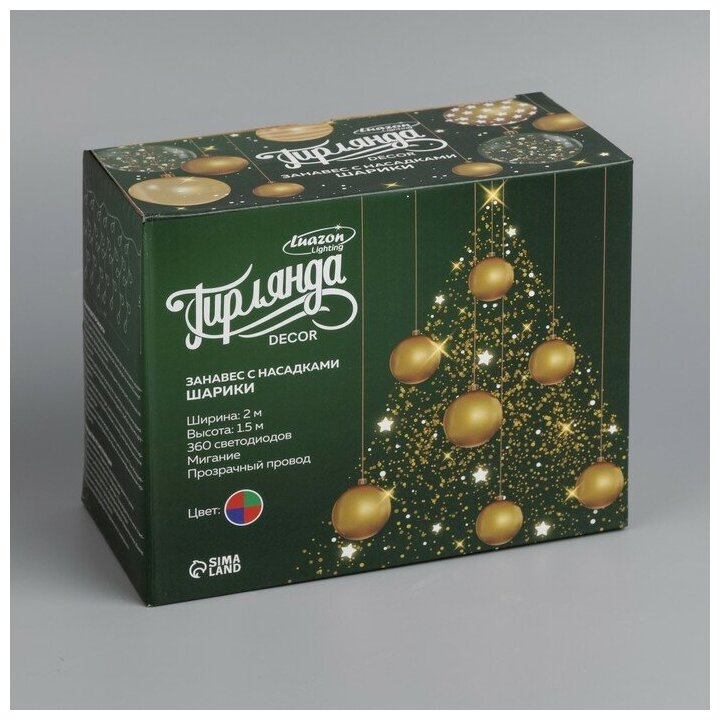 Купить Luazon Lighting Гирлянда «Занавес» 2 × 1.5 м с насадками «Шарики», IP20, прозрачная нить, 360 LED, свечение мульти (RG/RB), мигание, 220 В