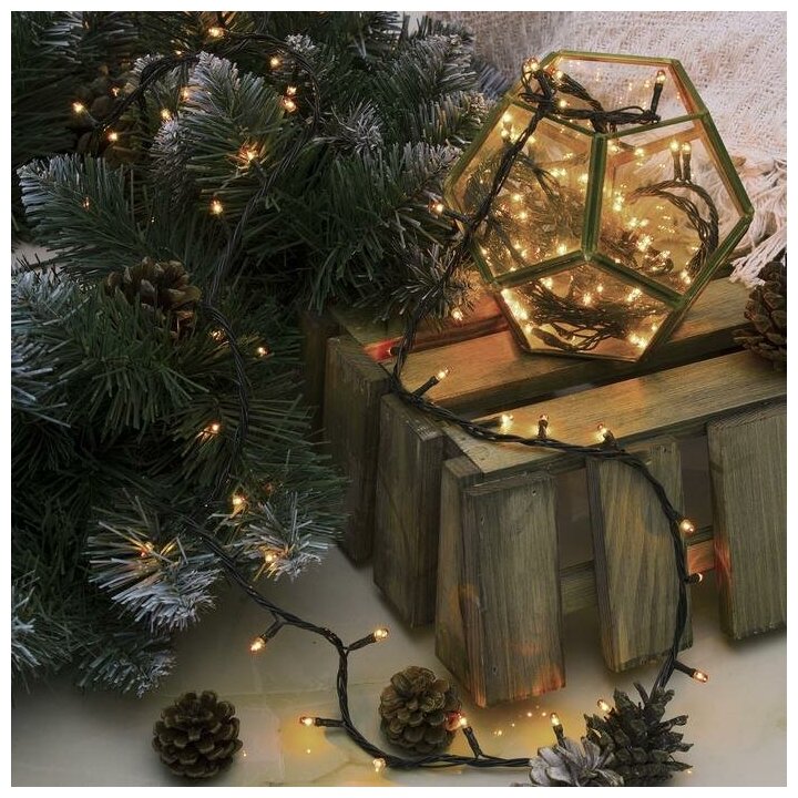 Гирлянда новогодняя "Нить" 7 м, IP20, тёмная нить, 180 ламп, свечение тёплое белое, 8 режимов, 220 В