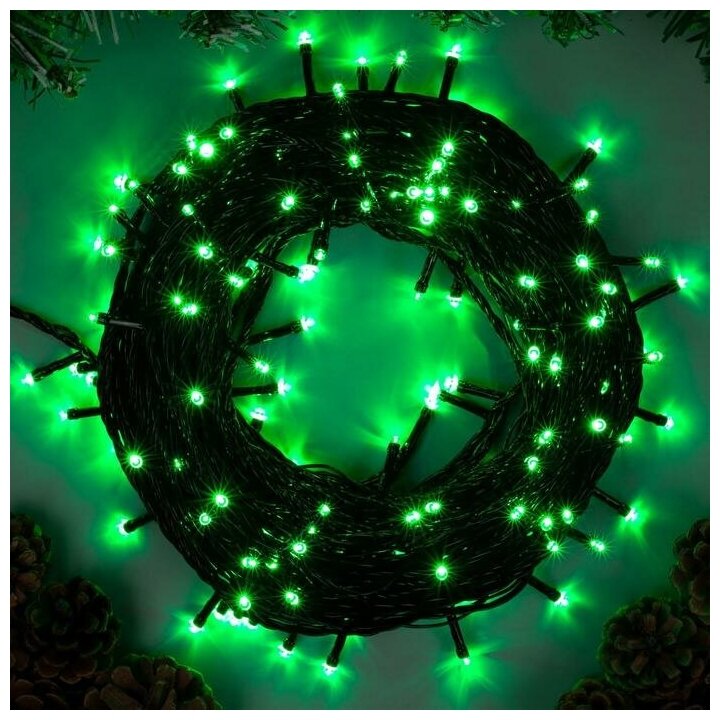 Купить Гирлянда «Нить» 20 м, IP20, тёмная нить, 200 LED, свечение зелёное, 8 режимов, 220 В