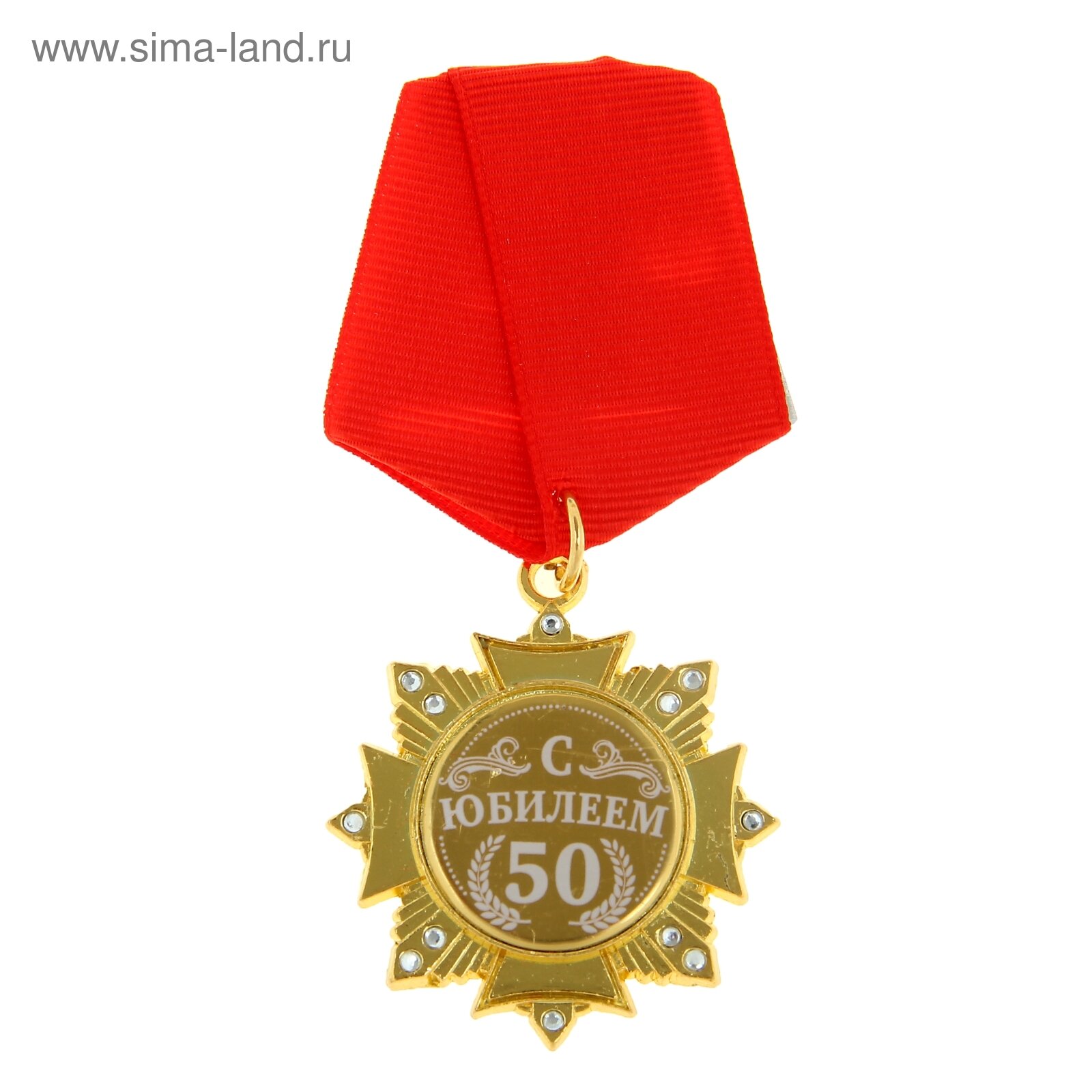 Медаль орден на подложке "С Юбилеем 50 лет", 4.7 x 10 см