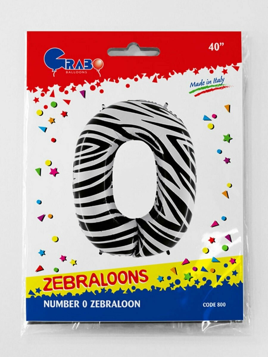 Купить Воздушный шар Цифра 0, Зебра, 101 см