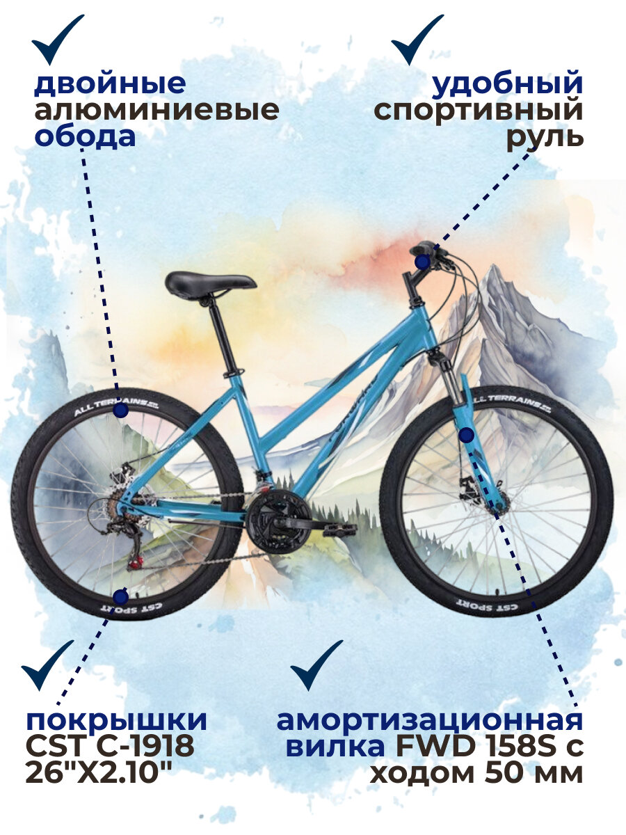СохранитьFORWARD Iris 2.0 disc 18ск. 26" 2022 (требует финальной сборки), Цвет бирюзовый-белый, Размер 17" интересное: