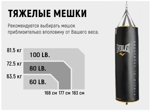Мешок Everlast 120 45кг, 120*35см, черный интересное:
