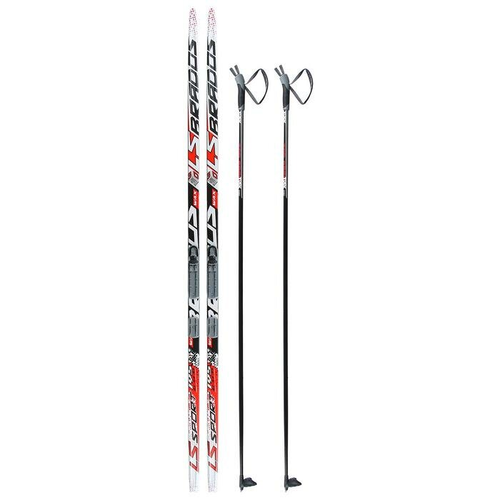 Бренд ЦСТ Комплект лыжный: пластиковые лыжи 195 см без насечек, стеклопластиковые палки 155 см, крепления NNN «бренд ЦСТ», цвета микс интересное: