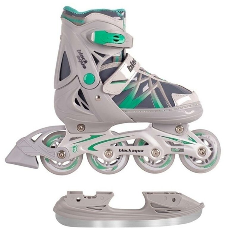 AS-410 Коньки BlackAqua 2в1 (коньки+ролики) , серо-зелёный (31-34р)