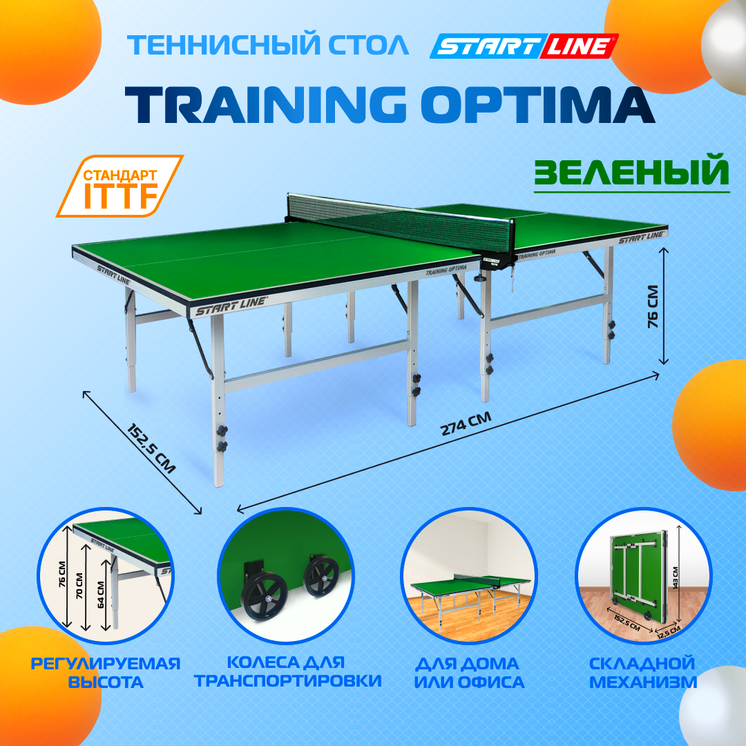 Купить Теннисный стол Start Line Training Optima green любительский, для помещений, с регулировкой высоты